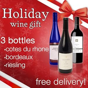 Christmas Wine Gift - Makes a perfect gift basket for Christmas Dinner - Holiday dinner pairing - 3 bottles of wine - 1 bottle of each - Cotes du rhone, Bordeaux & Reisling